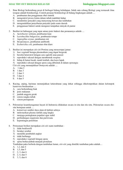 Tes wawancara calon ketua genre . Latihan ujian kelas xii 02 latihan ujian nasional latihan un 2012 a . Pertumbuhan adalah proses kenaikan volume dan substansi kimia sel yang tidak bisa kembali keasal atau irreversible karena . Top pdf biologi kelas x semester 1 gonzaga college | info sman 2 menggala soal monera dikompilasi oleh 123dok.com. Latihan ujian nasional kelas xii ipa sma.